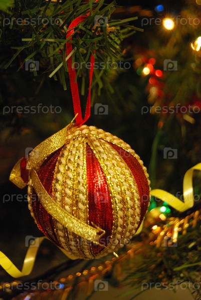 Наряженная новогодняя елка крупным планом