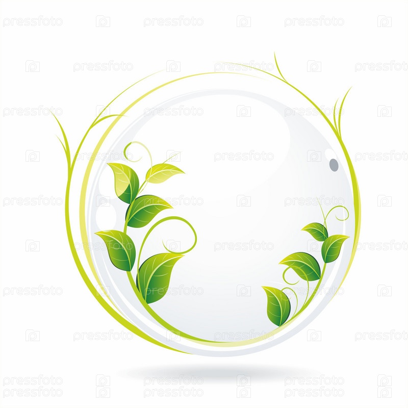 Векторный природный фон. Белый стеклянный шар с мокрой листья