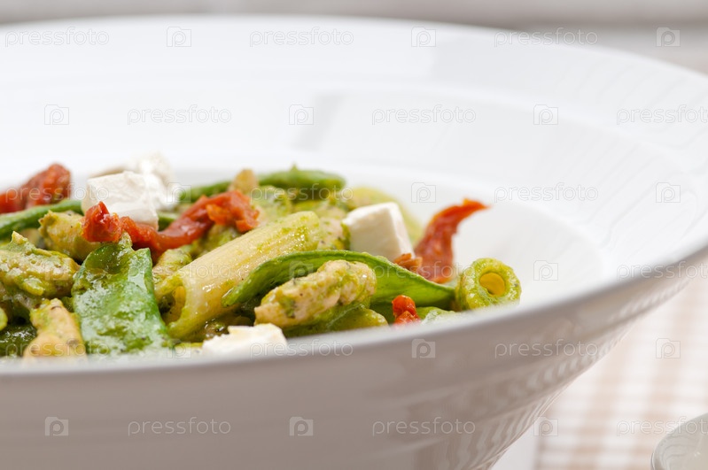 Итальянские макароны пенне с вялеными помидорами и базиликом