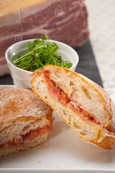 Чиабатта панини - сэндвич с пармской ветчиной и помидорами