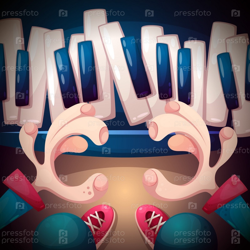 Музыкальная иллюстрация: фортепиано, синтезатор, руки и ноги