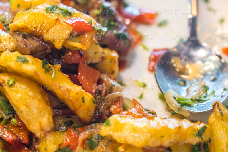 Жареный картофель и мясо, Оякхури - традиционная грузинская еда