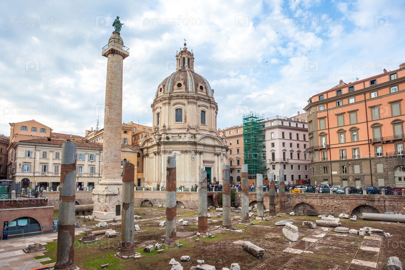 Церковь Пресвятого имени Марии и знаменитая колонна Траяна, Рим, Италия