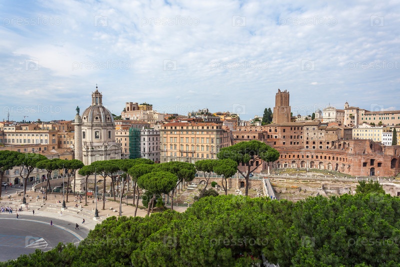 Вид на колонну Траяна и рынок Траяна, Рим, Италия