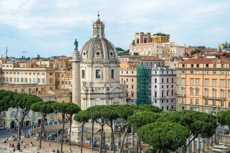 Церковь Пресвятого имени Марии и знаменитая колонна Траяна, Рим, Италия