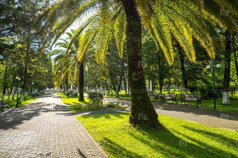 Дорожка в красивом парке с пальмами, Поти, Джорджия