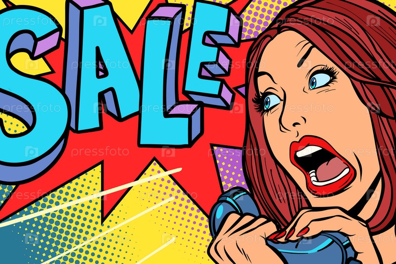 Продажа, сезон покупок.Женщина кричит по телефону