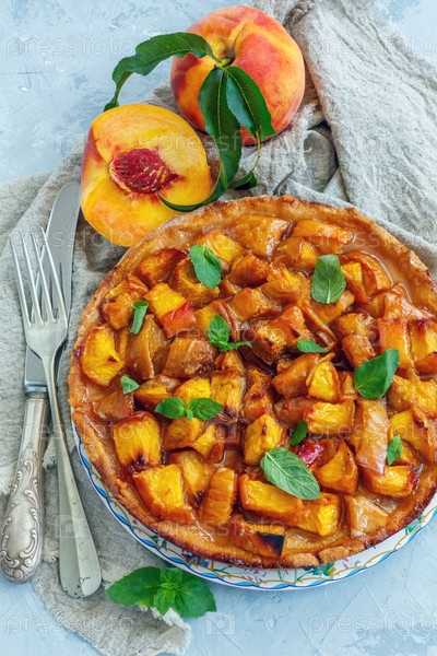 Домашний пирог с персиками и свежей мятой