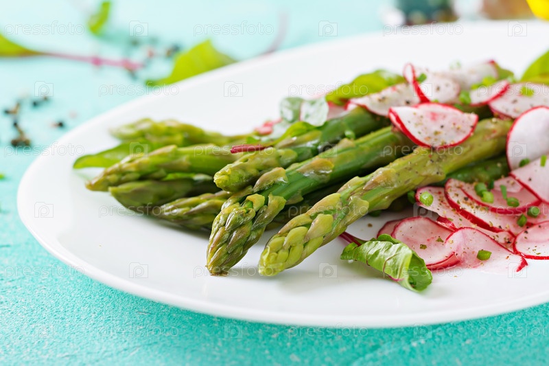 Салат из спаржи с редисом и карпором. Веганская кухня. Здоровая еда