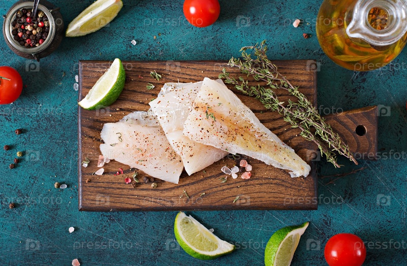 Филе белой рыбы на деревянной доске, подготовленной для приготовления пищи