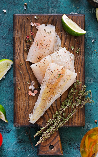 Филе белой рыбы на деревянной доске, подготовленной для приготовления пищи