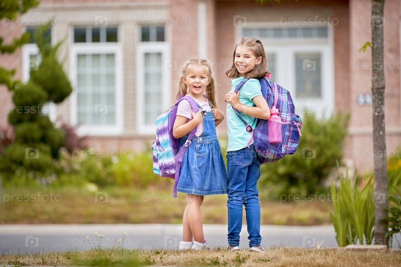 Девочки с рюкзаком ходят в школу