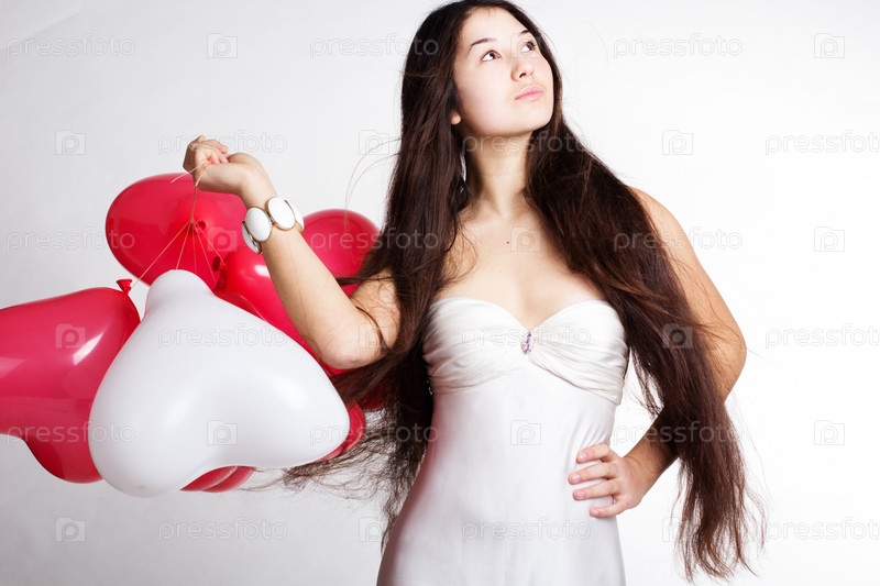 Валентина день женщина, держащая красные сердца шары