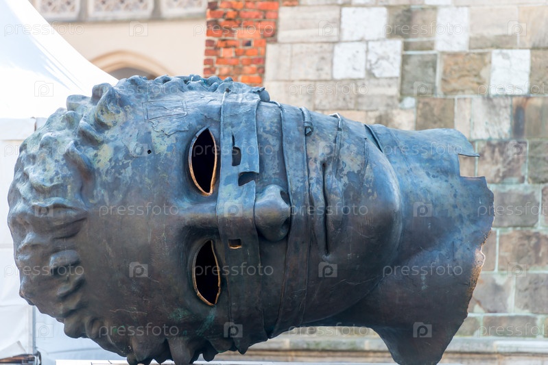 Краков, Польша - 11 августа 2017 года: Скульптура Игоря Митоража 'Eros Bendato' на главной площади в Кракове, Польша