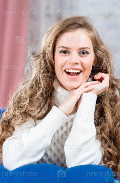 Шокированная эмоциональная красивая девушка в теплом свитере вертикальный портрет
