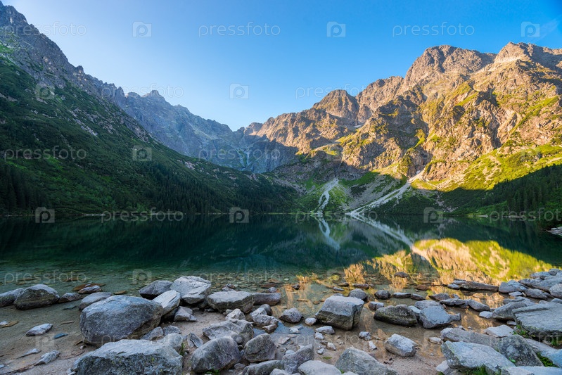 Красивое озеро Морские Око в Татрах Польши в тени гор