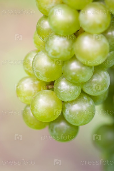 Зрелый органический виноград белого вина в винограднике, готовый к сбору урожая и производству вина