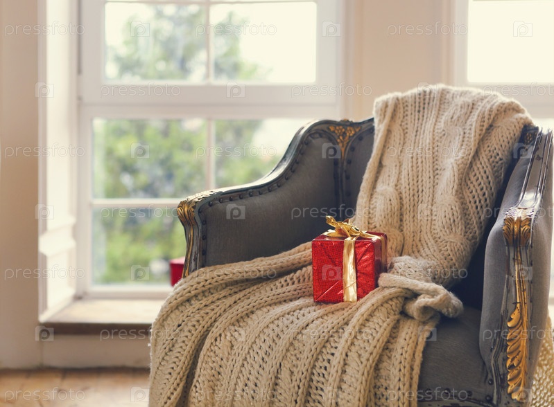 Один красный подарок на старинном кресле