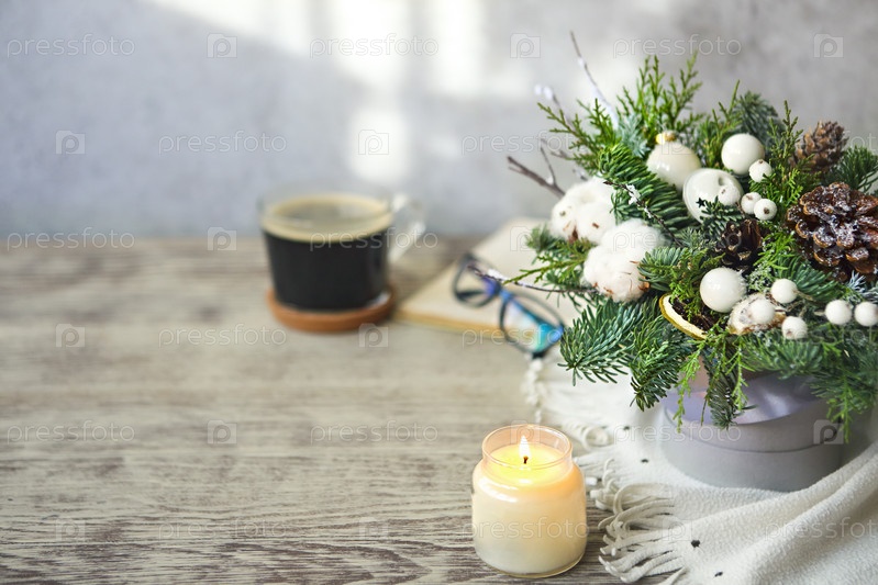 Рождественская композиция с шариками, сосновыми конусами, игрушками из елей и хлопотом