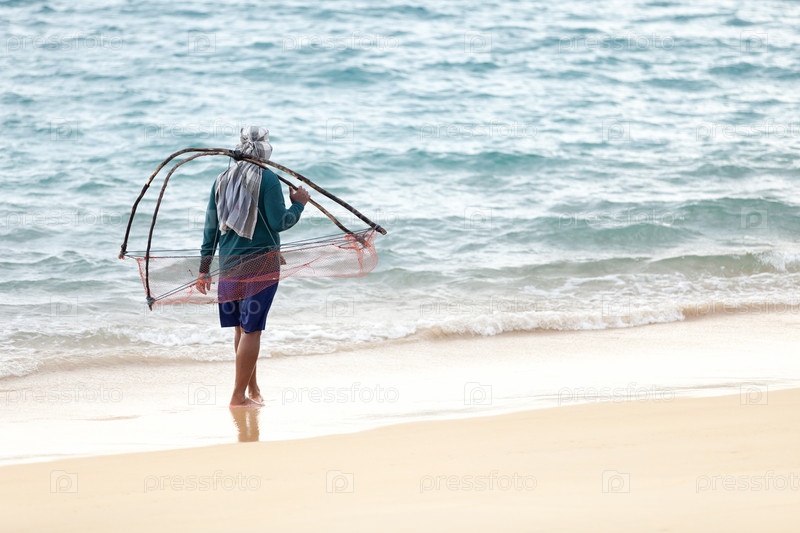 Человек с сетью на побережье Таиланда