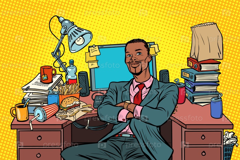 Поп-арт африканский бизнесмен, рабочее место