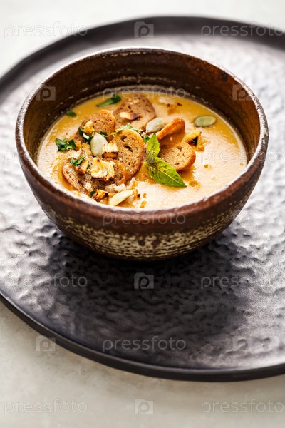 Пикантный тыквенный суп с кротонами