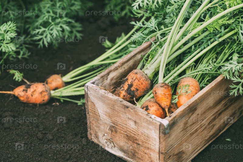 Органические морковь в деревянной коробке