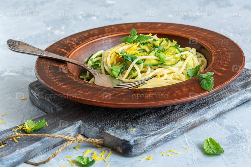 Спагетти с кабачками и свежей мятой