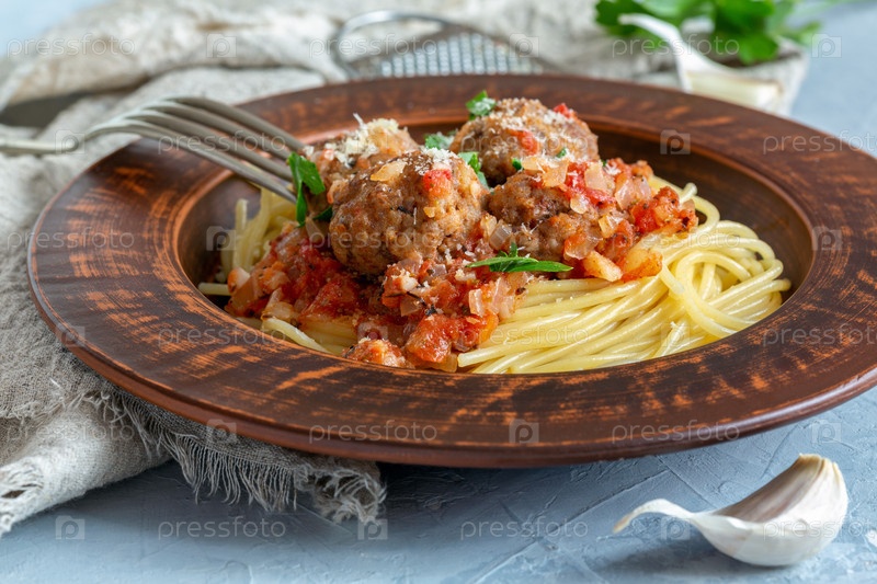 Мясорубы в томатном соусе и спагетти