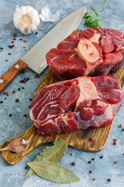 Два куска сырой говядины и специи