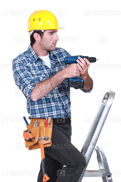 Рабочий с дрелью