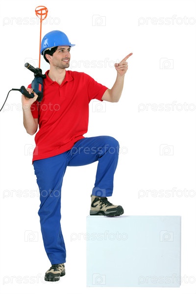 Каменщик с доской для объявления