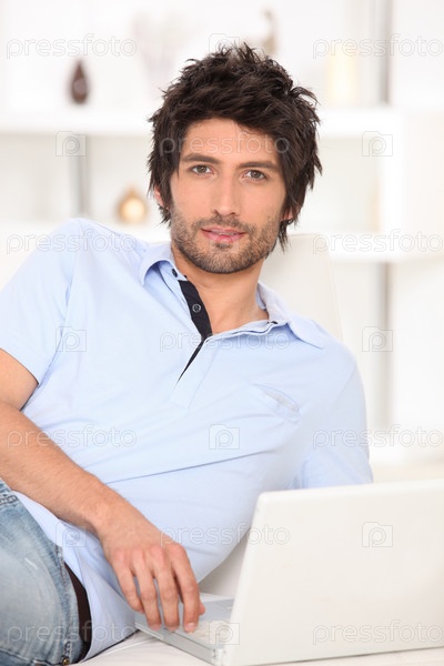 Портрет молодого мужчины с ноутбуком