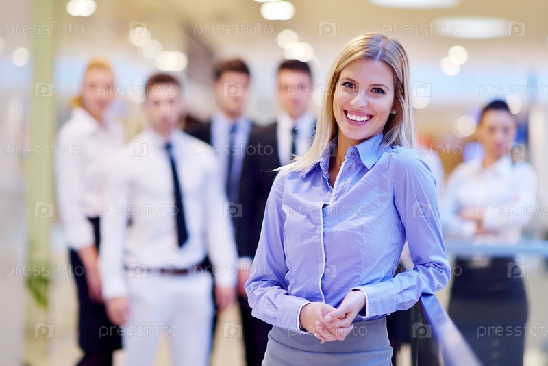 Бизнес-леди и ее сотрудники в офисе