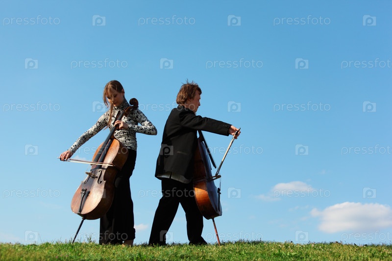 Двое музыкантов с виолончелями
