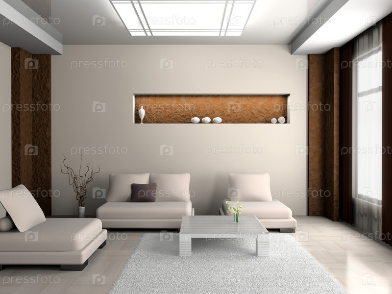Современная гостиная с мебелью в 3D