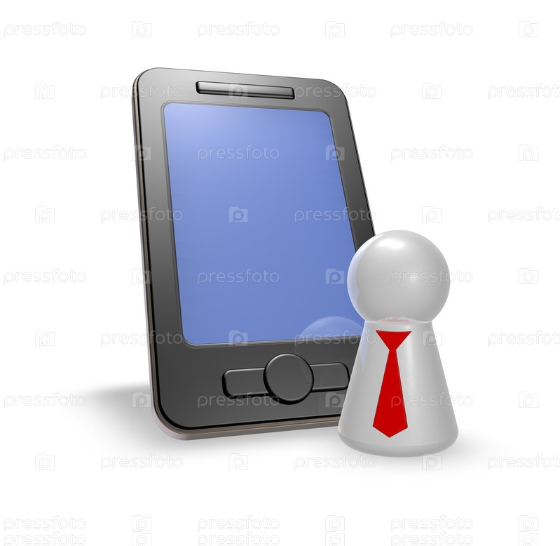 Смартфон и человечек с галстуком - 3D иллюстрация
