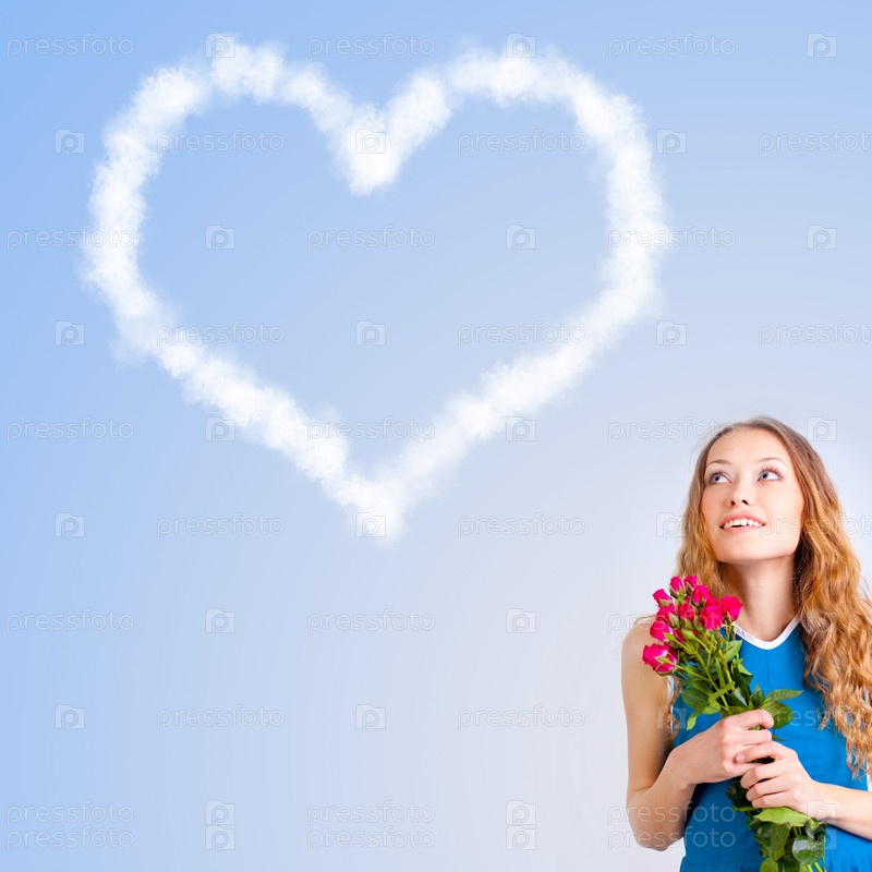 Женщина держит букет из роз и мечтает