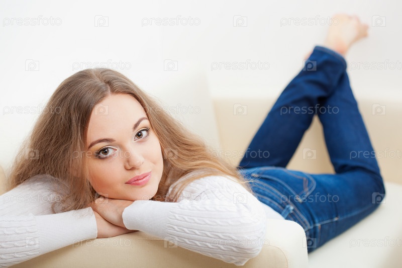 Женщина лежит на диване