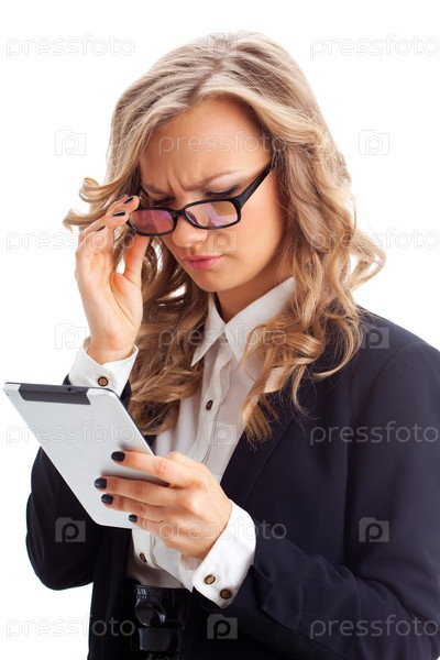 Задумчивая бизнес-леди с планшетом