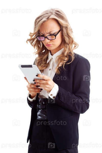Задумчивая бизнес-леди с планшетом