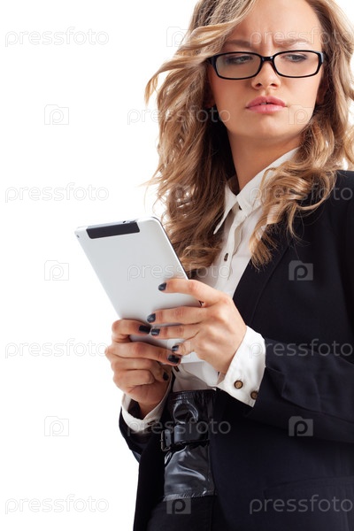 Задумчивая бизнес-леди с планшетом
