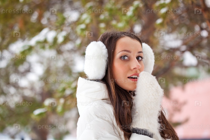 Женщина гуляет в зимнем парке