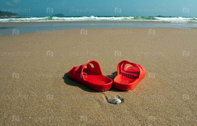Красные тапки на берегу моря