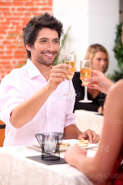 Пара празднует в ресторане