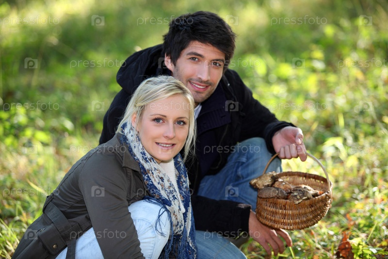 Пара с корзинкой грибов