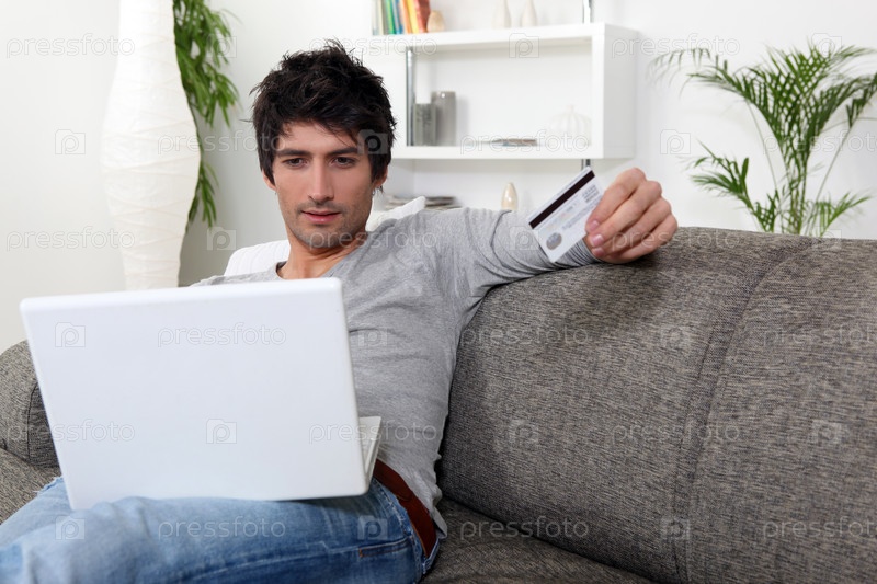 Мужчина с кредитной картой и компьютером