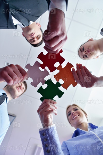 Группа деловых людей с пазлами