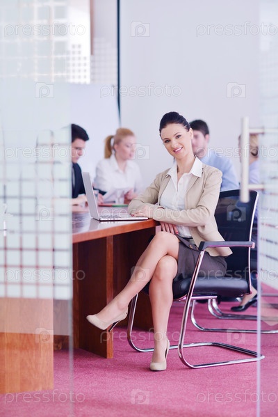 Бизнес-леди на встрече с сотрудниками в офисе