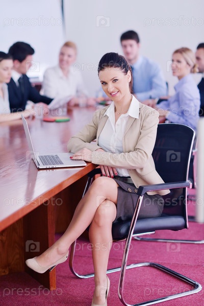 Бизнес-леди на встрече с сотрудниками в офисе